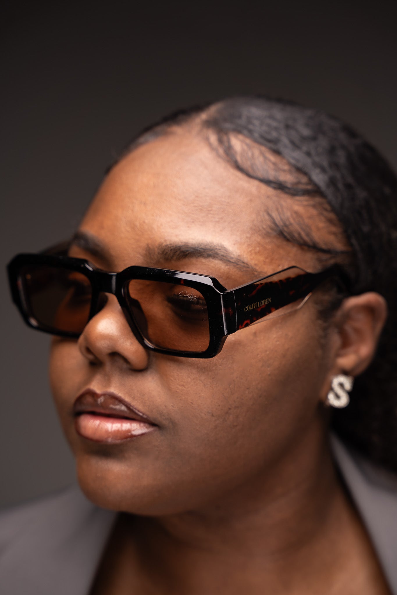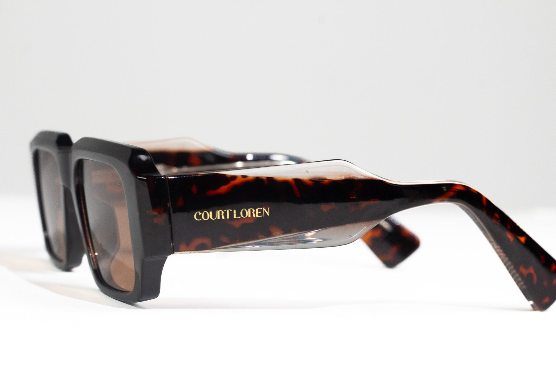Glossy Brown Tortoise print with gold Courtloren logo detail