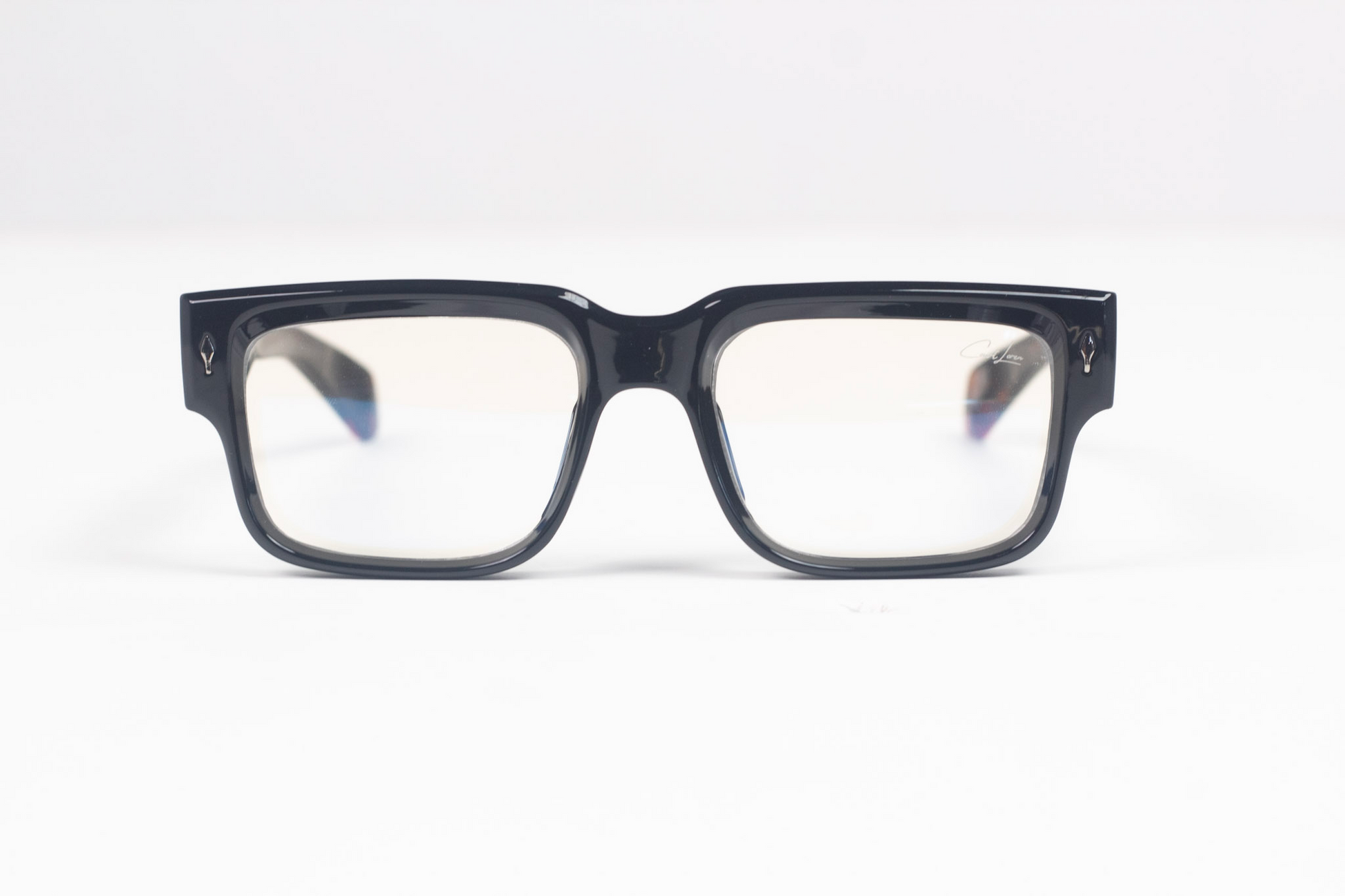 Glossy black acetate for a polished, high-end feel