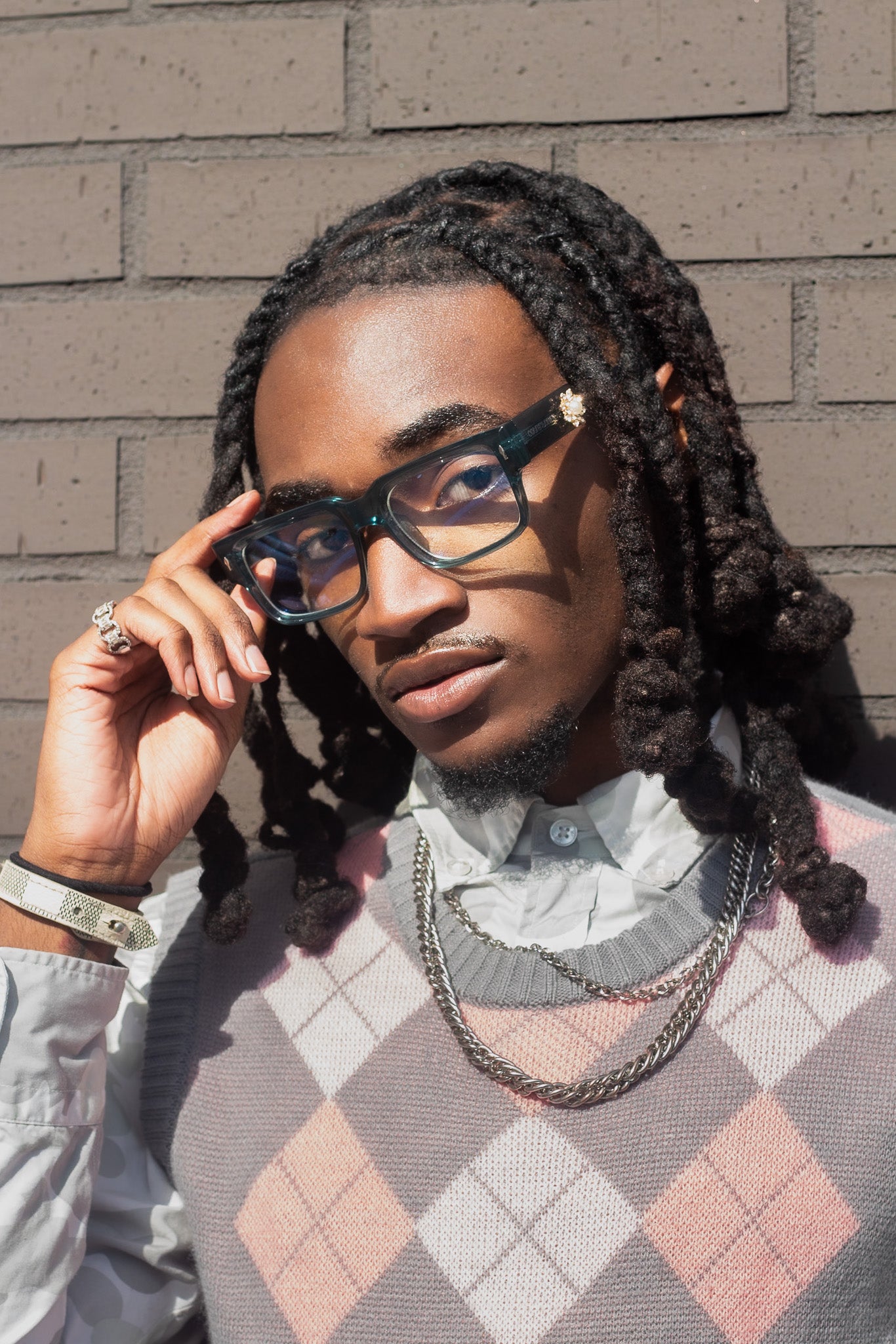The Insight frame; CRAFTED EDITION, features a clean rectangular shape that strikes the perfect balance between effortless and refined. Designed with a pearl gem on it's sides to elevate your everyday style, these frames add a professional edge to casual looks and a polished finish to elevated fits. Minimal yet impactful, Insight is your go-to when you want to look composed, confident, and in control.