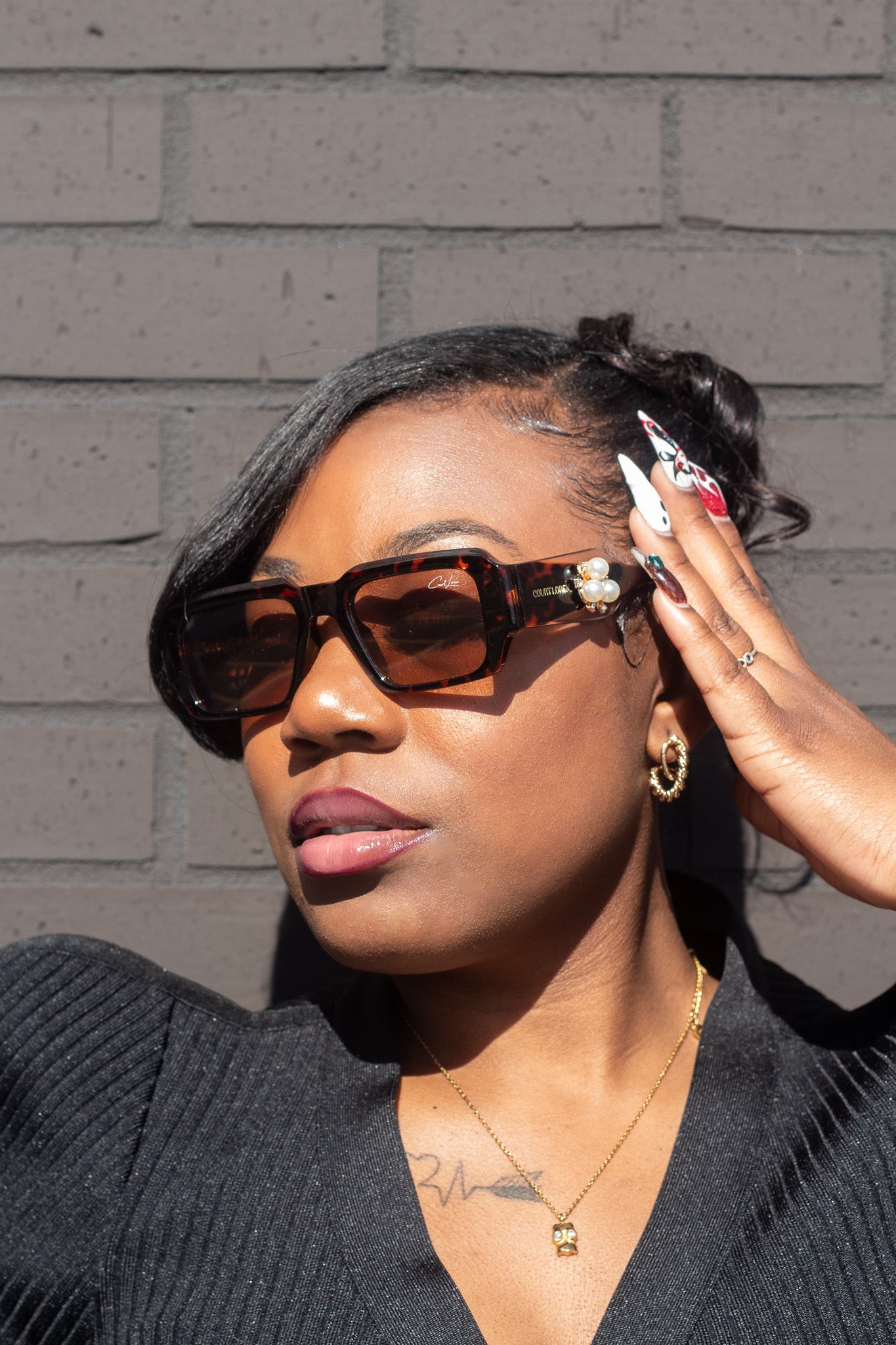 The Lumiere frame; CRAFTED EDITION. These are customized with a 3 pearl gem on each wire, creating effortless glow with its soft yet structured design — a perfect balance of elegance and edge. Inspired by light itself, this pair is made for those whose energy can’t be dimmed. Whether day or night, boardroom or rooftop, Lumiere captures that golden-hour confidence that turns heads and shifts atmospheres.